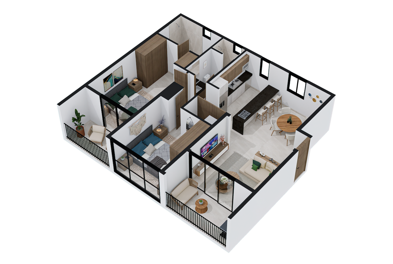 DepartamentoTipo 9 Azulejosgrand 101 m² / 2 Recámaras (flex) Diseño moderno • Espacios funcionales • Acabados premium 2 Recámaras 2 Baños 88 m² de Interior 13 m² de Terraza Vista a condominios Amenidades Más que un hogar, una inversión para toda la vida. Disponible para entrega inmediata